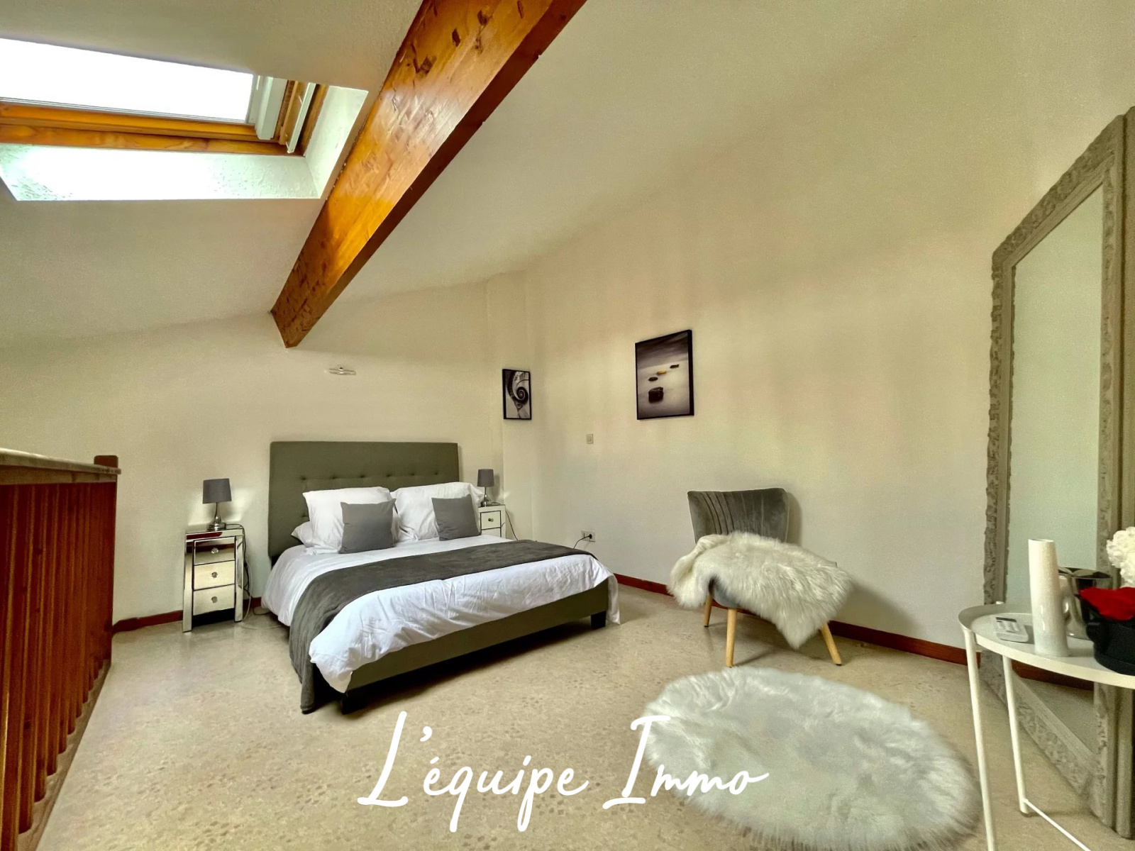 A l'étage, une autre chambre avec velux et une salle de bain d'environ 5m² viennent compléter l'ensemble. Accès à toutes les commodités à pied !