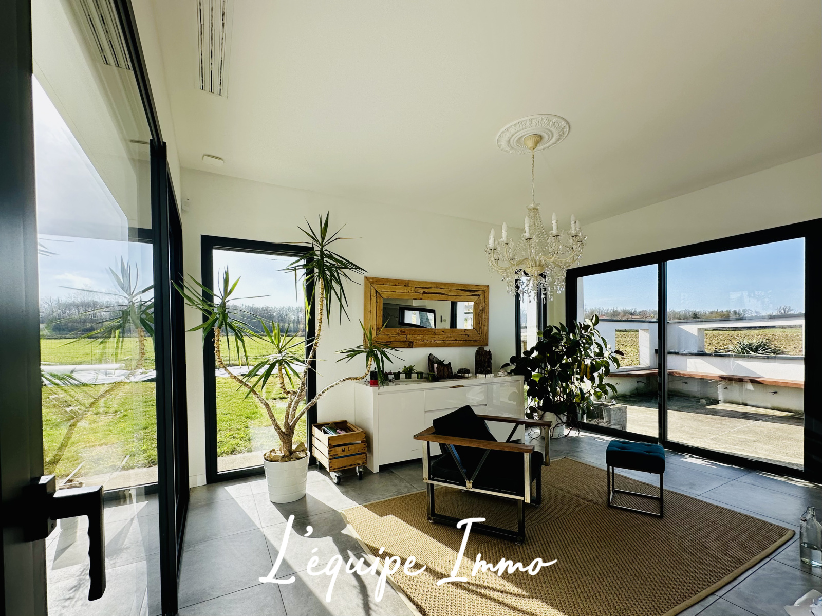 L'entrée dessert une belle pièce à vivre spacieuse avec cuisine intégralement meublée et équipée offrant de multiples ouvertures. Un cellier et un wc séparé viennent compléter le coin jour.