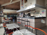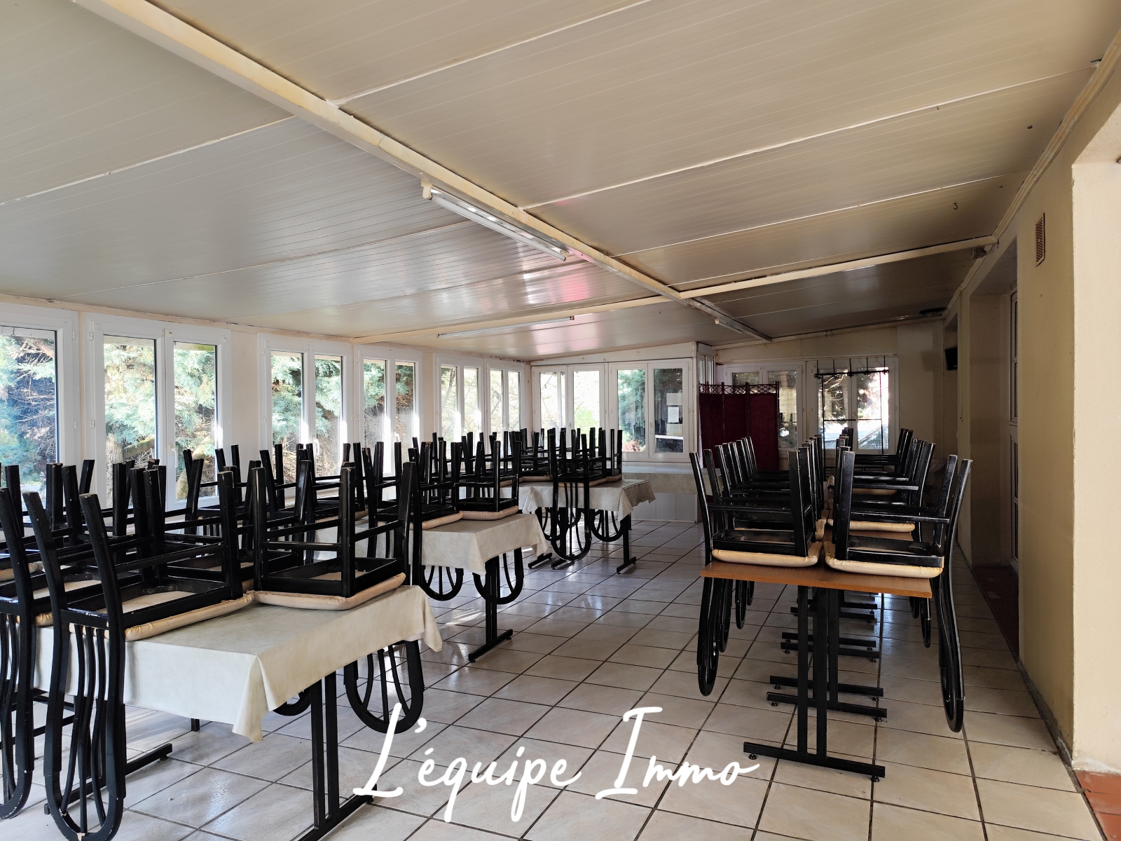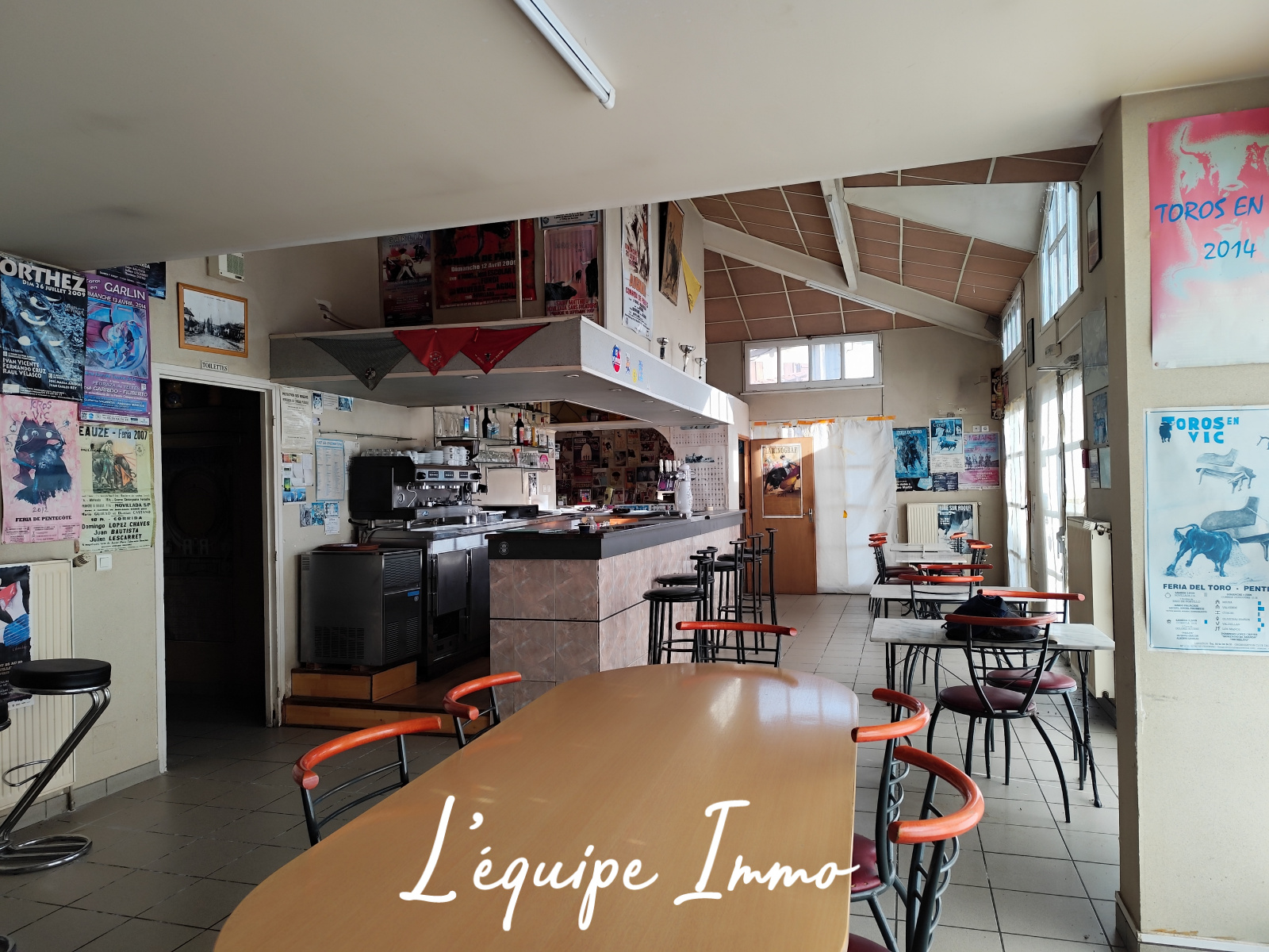 Une partie bar avec salles de restaurant et cuisine professionnelle (coin chaud, froid et plonge).