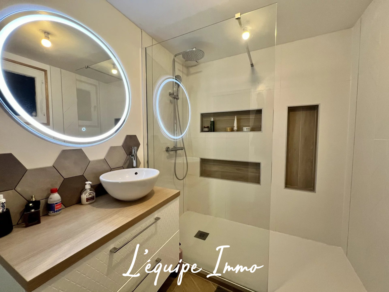 Le dégagement dessert un spatieux salon, une cuisine équipée, 3 chambres dont une avec salle de bains, une salle d'eau indépendante, et un toilette séparé.