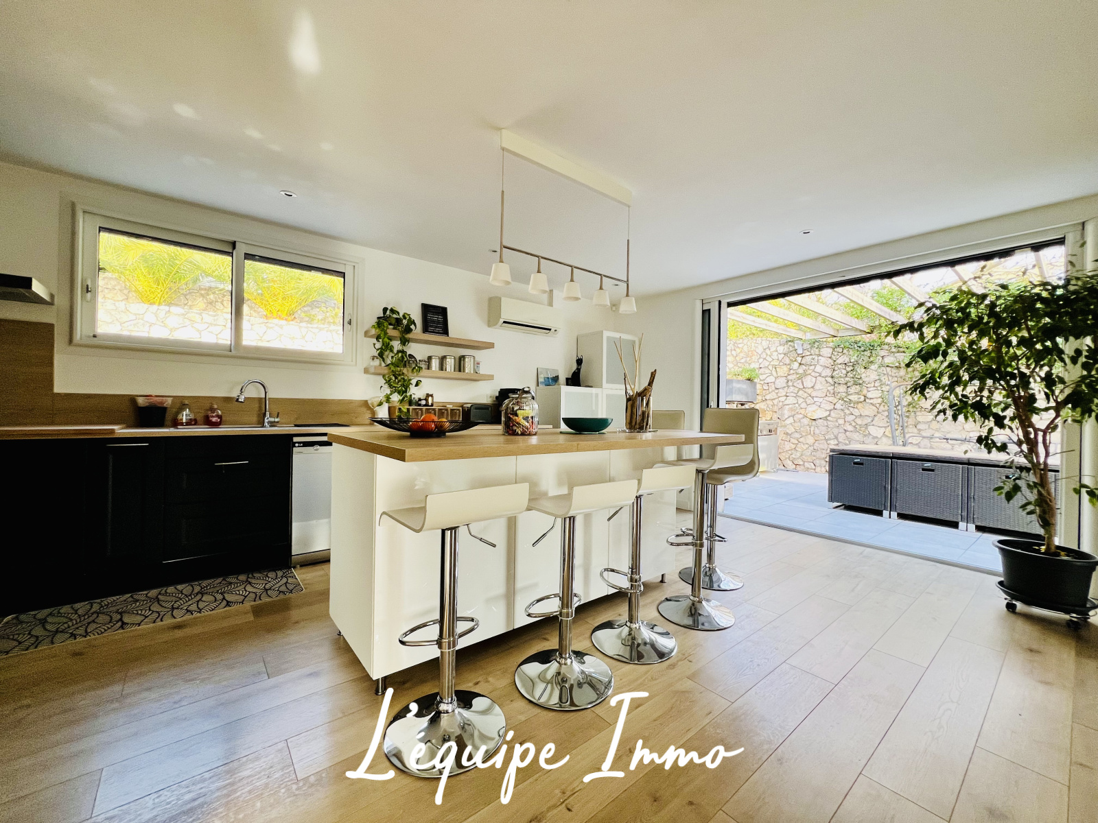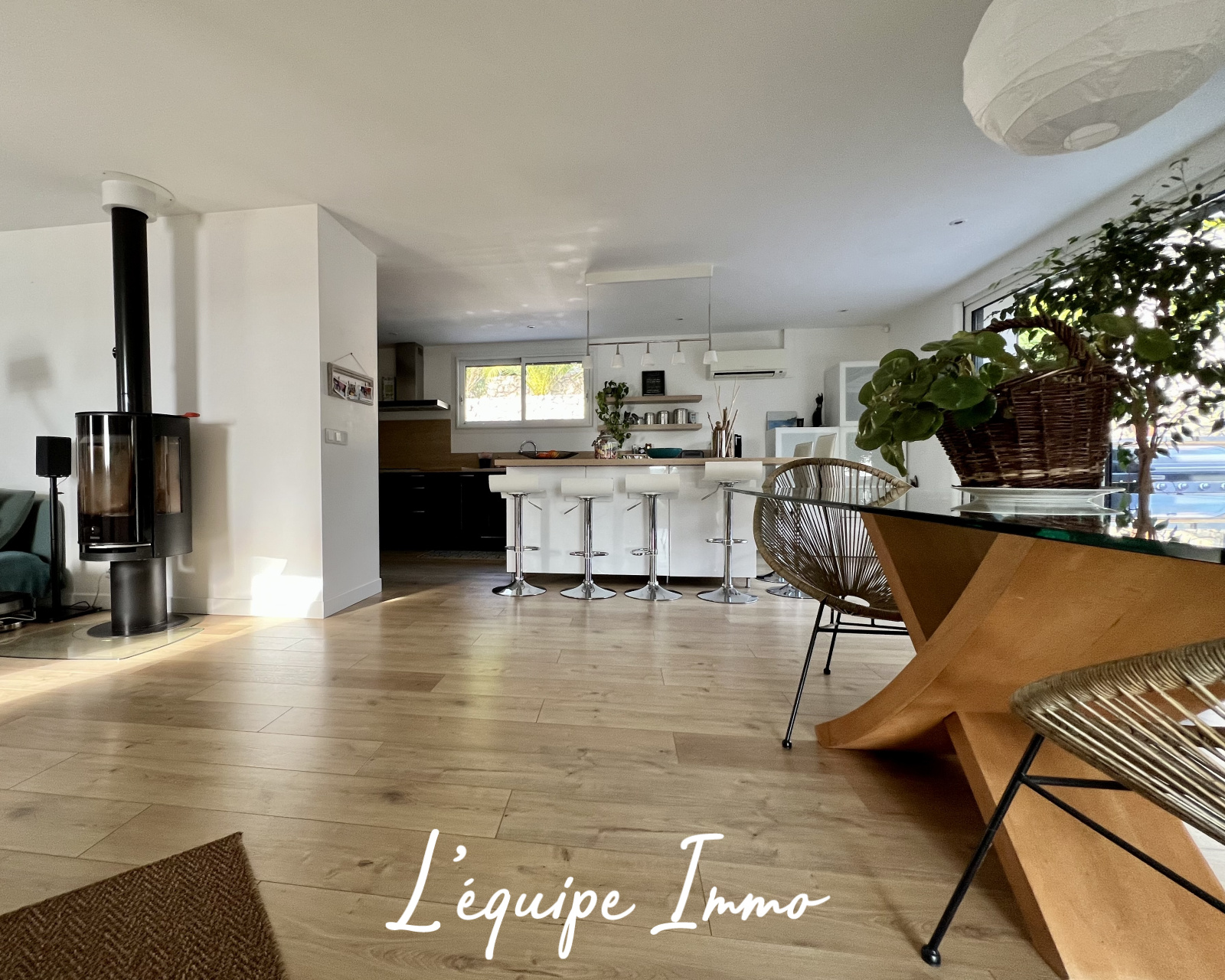 Une maison confortable avec de belles prestations: climatisation, volets solaires roulants, poële à bois, panneaux photovoltaïques....