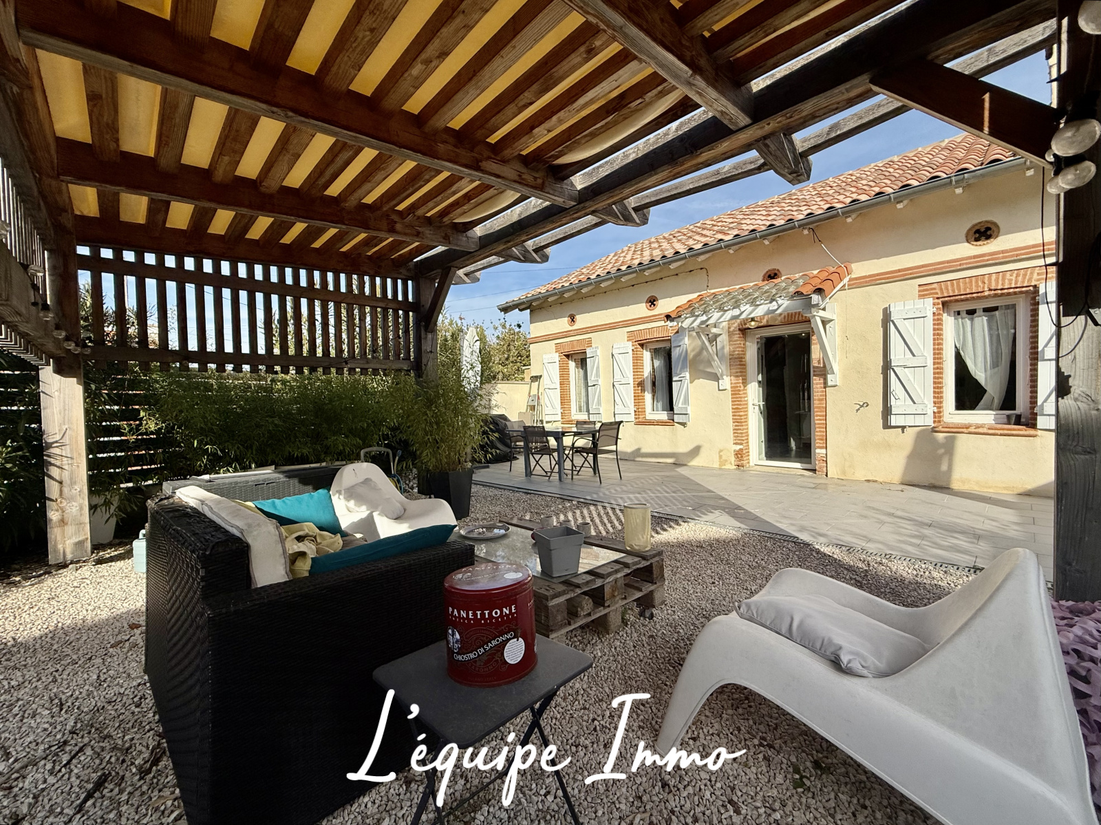 À l’extérieur, vous profiterez d’un jardin entièrement clôturé avec sa belle pergola idéale pour les moments de détente, les repas en plein air ou la vie de famille.