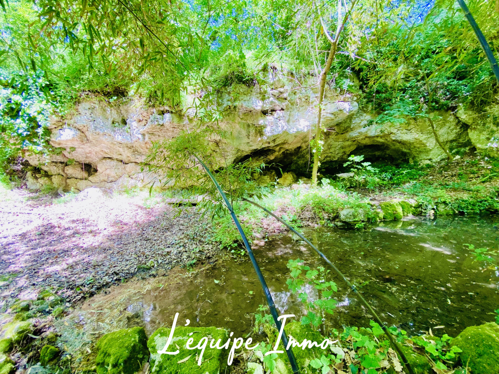 L'extérieur est ensuite très champêtre avec ses 2,5 hectares de terres et de bois, idéal pour des chevaux, un potager ou pour profiter simplement de la balade et partager des moments de détente auprès de la source naturelle et de sa grotte située en contrebas de la maison