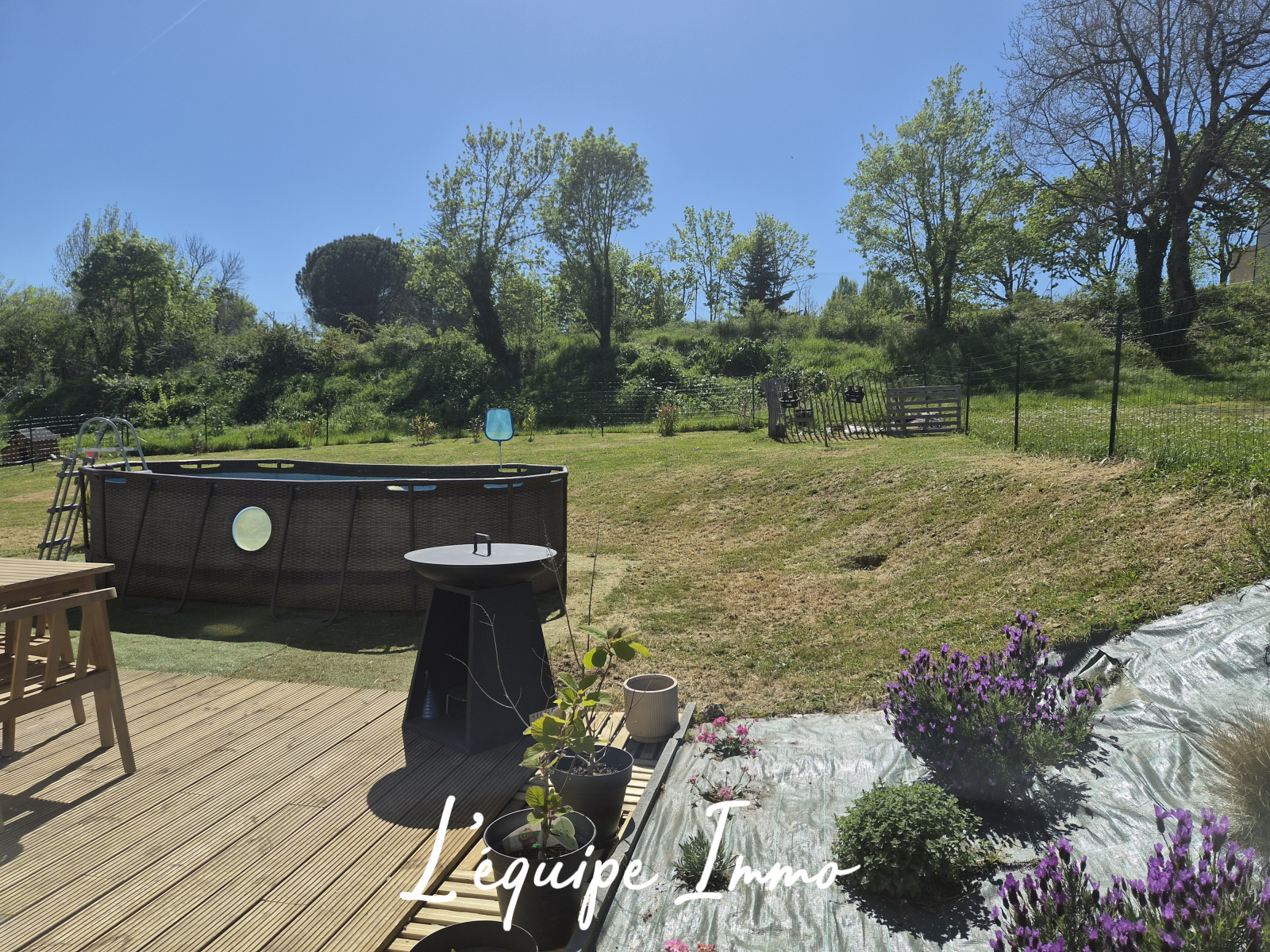 Le jardin est clôturé et équipé d'une terrasse de 20 m² ainsi que d'une piscine hors-sol.