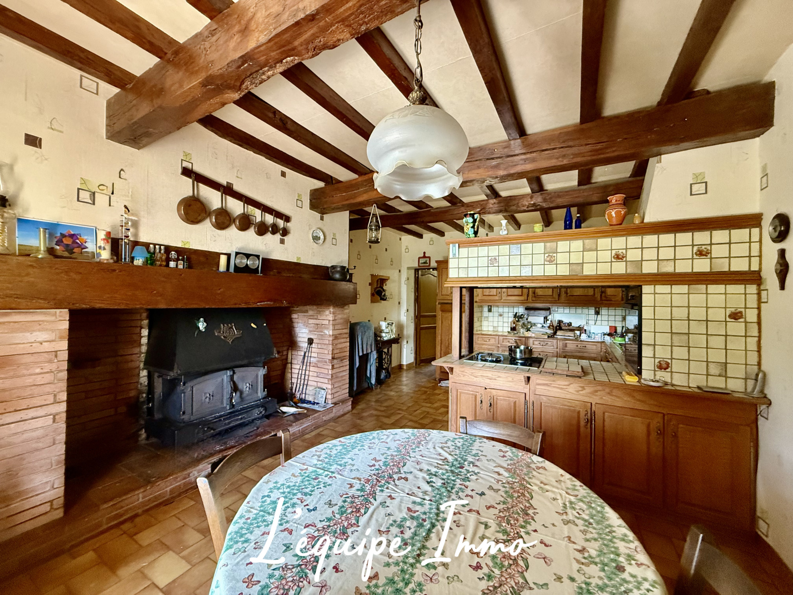 L'entrée dessert un salon-séjour, une cuisine séparée avec cheminée, 2 chambres, une salle de bains, un cellier.