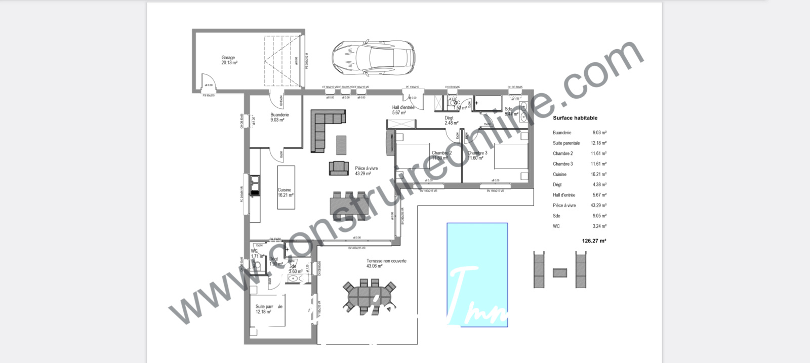 Un travail en collaboration avec Construire on line a été réalisé pour proposer un projet de construction d'habitation idéal tenant compte du terrain avec un budget estimatif. Bien entendu, tout autre type de projet de construction est possible dans le respect des règles d'urbanisme sur le secteur en vigueur.