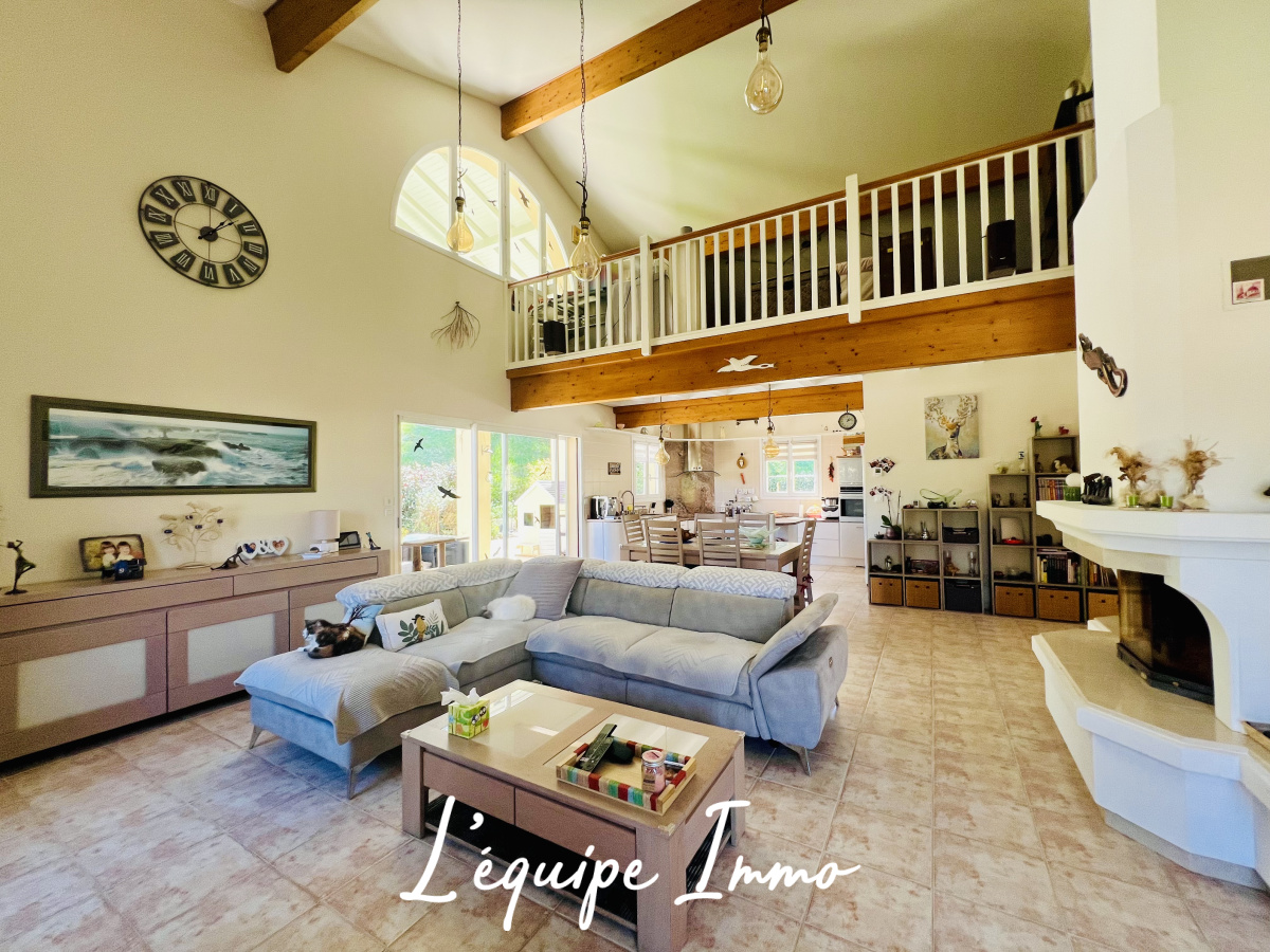 Un grand hall d'entrée dessert une pièce de vie déplafonnée avec cuisine équipée et arrière cuisine donnant sur l'agréable terrasse couverte.
