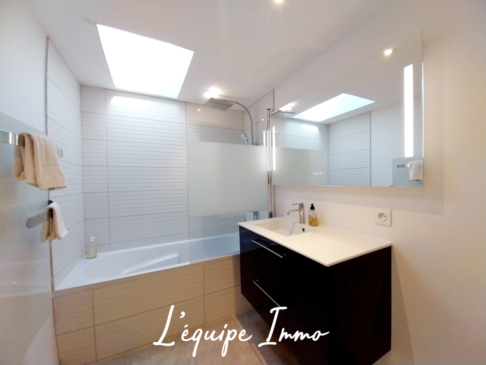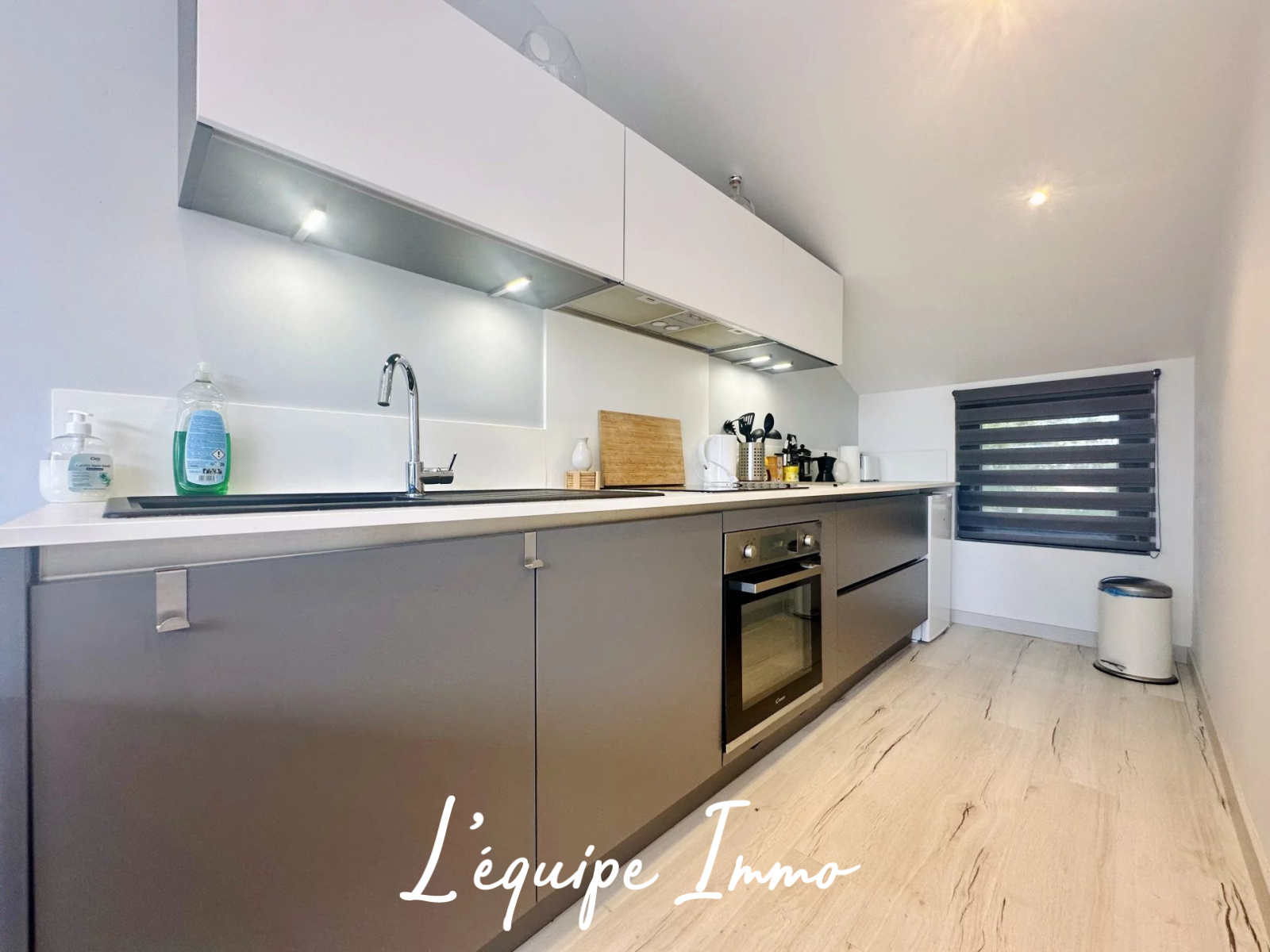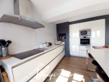 Vous découvrirez à l'’étage une pièce de vie lumineuse avec cuisine ouverte sur le salon et sur la terrasse, offrant un espace convivial et fonctionnel