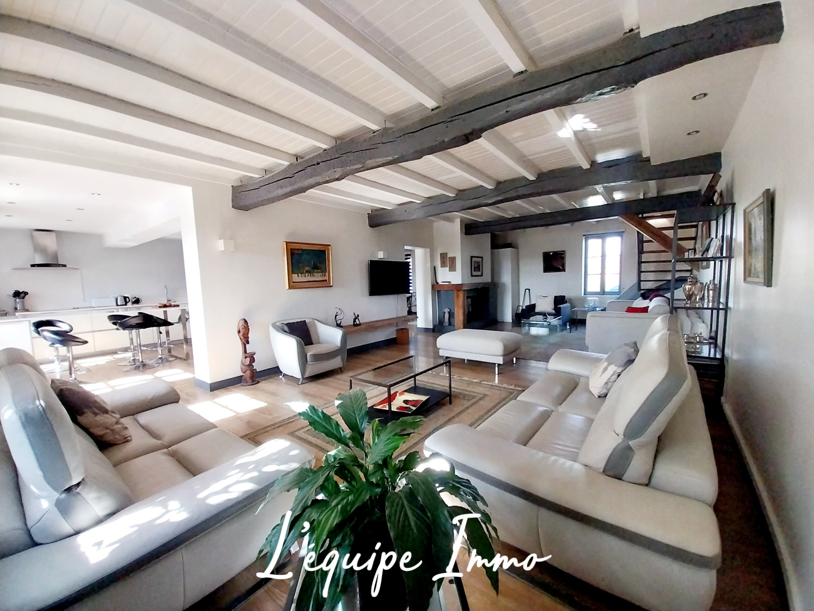 Le rez-de-chaussée accueille une magnifique pièce de vie de plus de 60 m², véritable cœur de la maison, offrant un espace convivial et lumineux idéal pour recevoir. Les volumes généreux et l’atmosphère chaleureuse en font un lieu de vie particulièrement agréable au quotidien.
