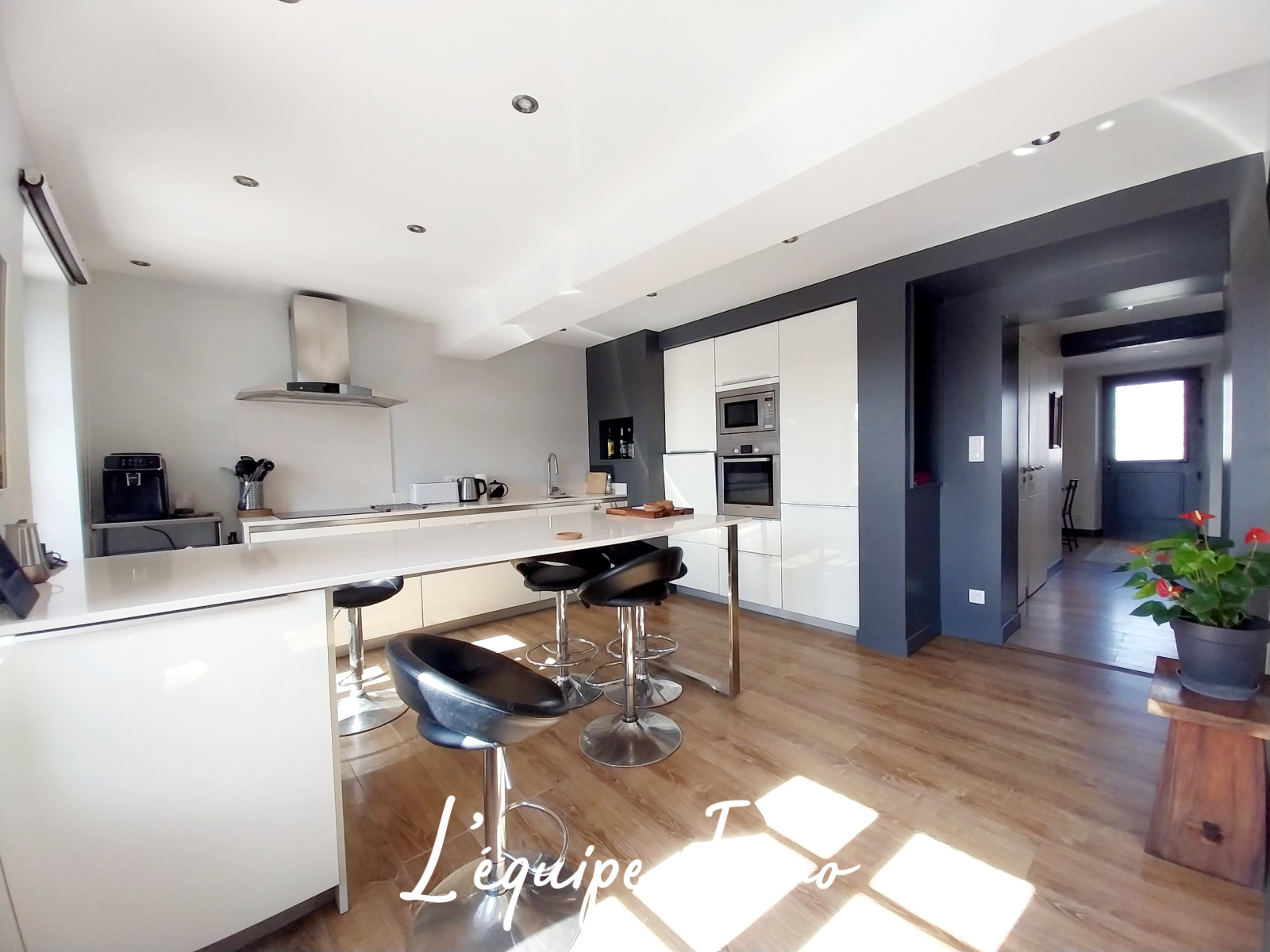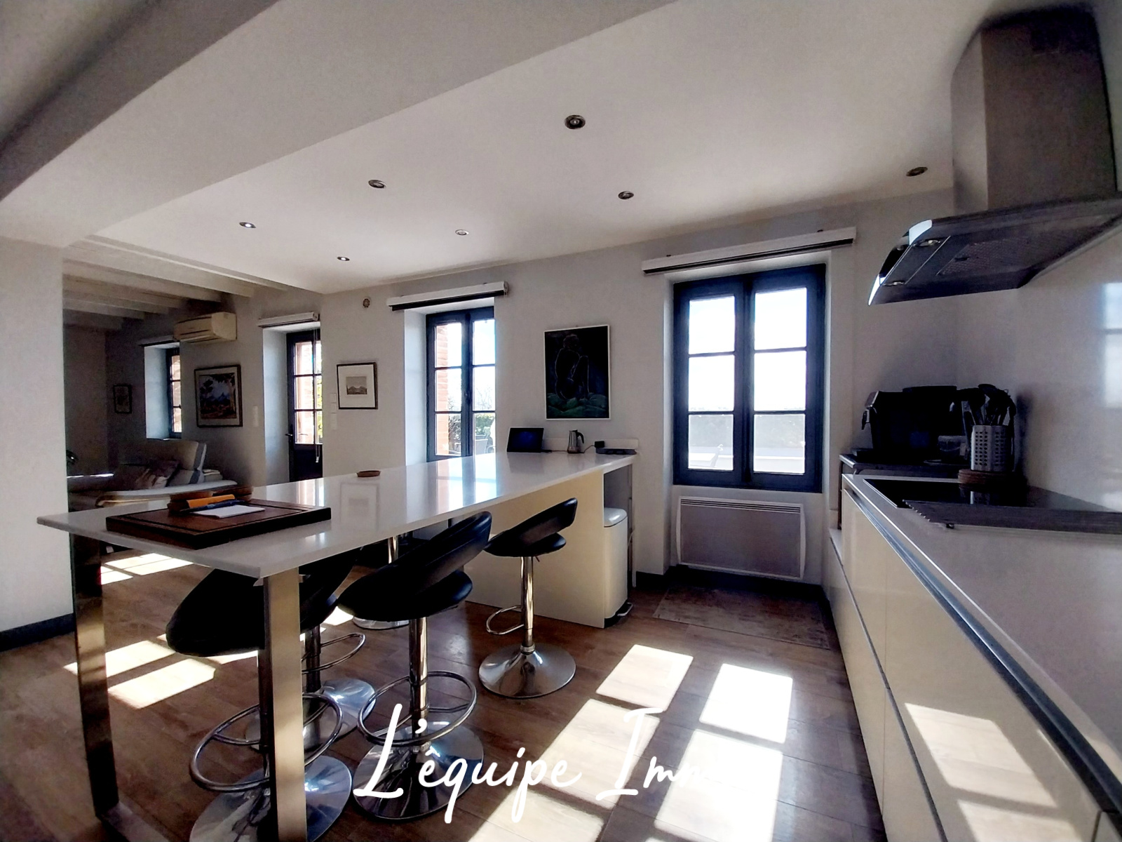 Développant environ 140 m² habitables répartis sur deux niveaux, elle offre de beaux volumes et une luminosité remarquable grâce à son exposition plein sud