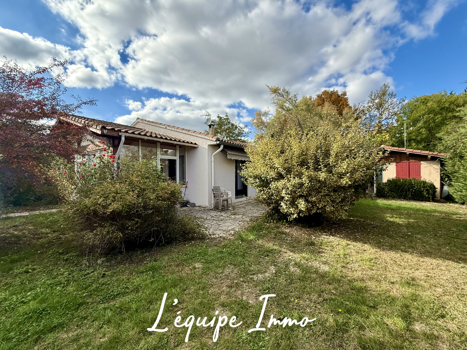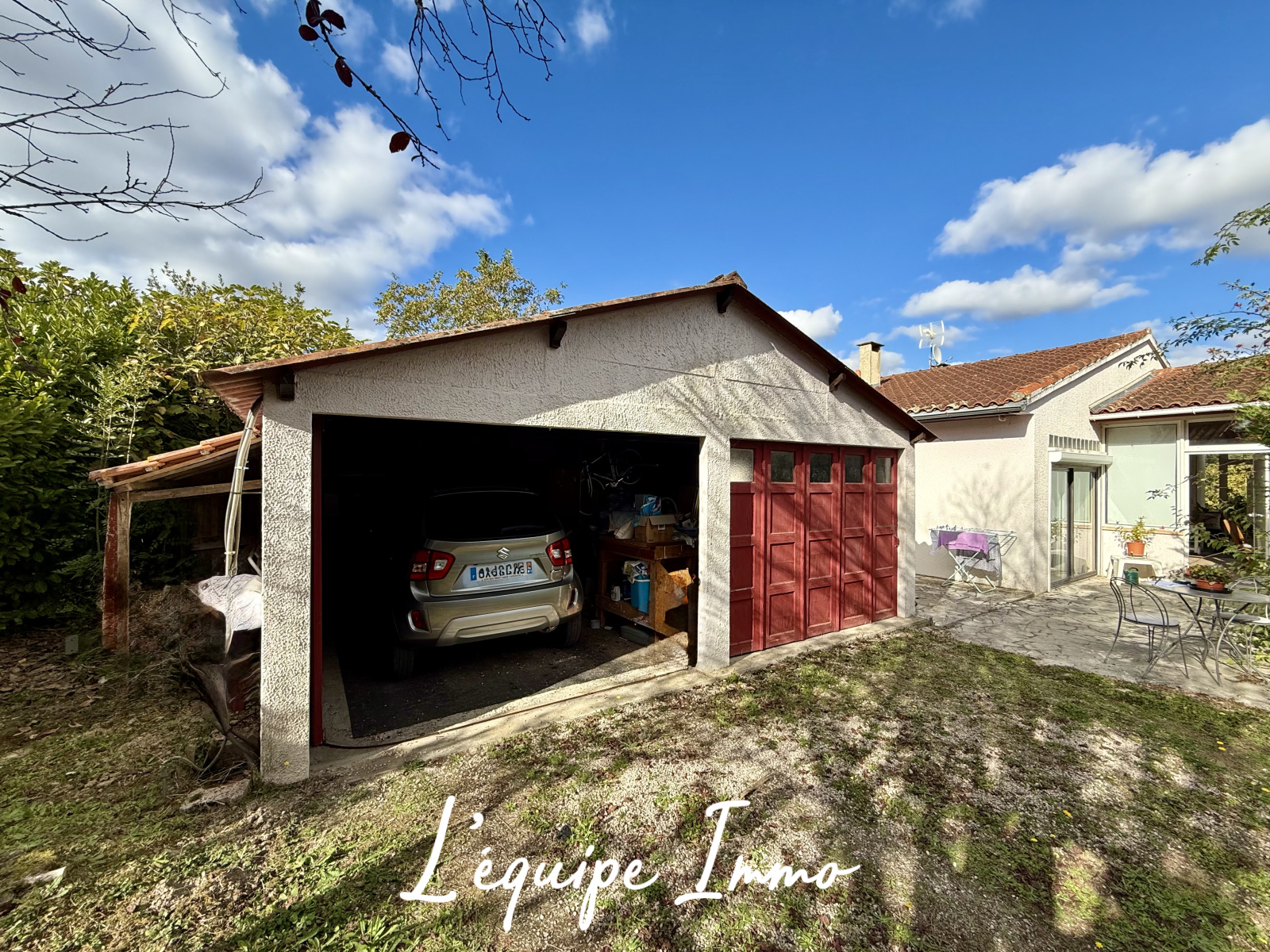 Un studio de 15m² avec cuisinette équipée, un double garage de 30 m² ainsi qu'une terrase couverte complètent ce bien.