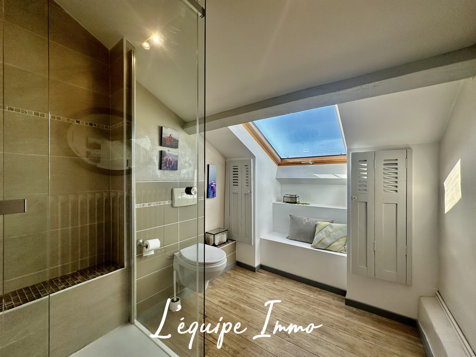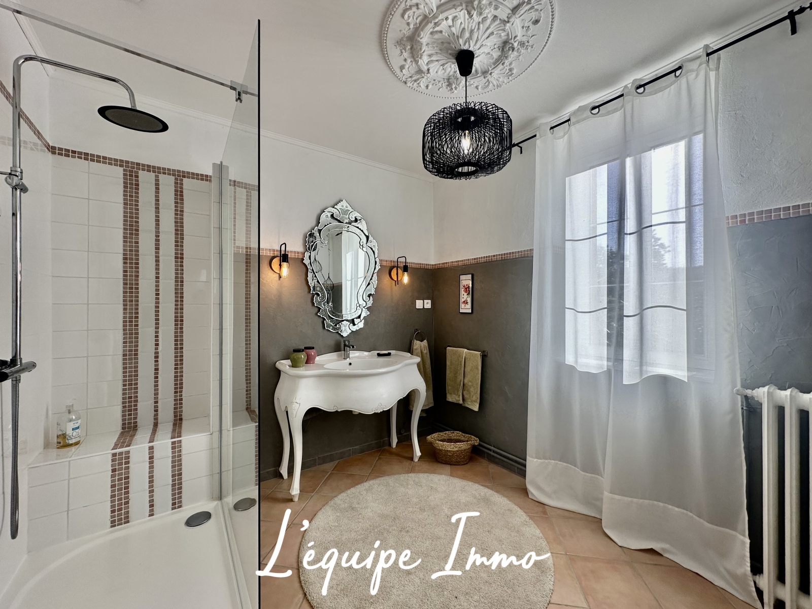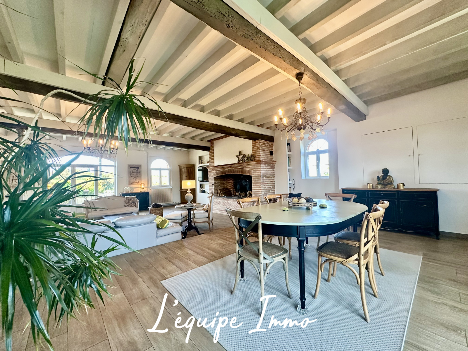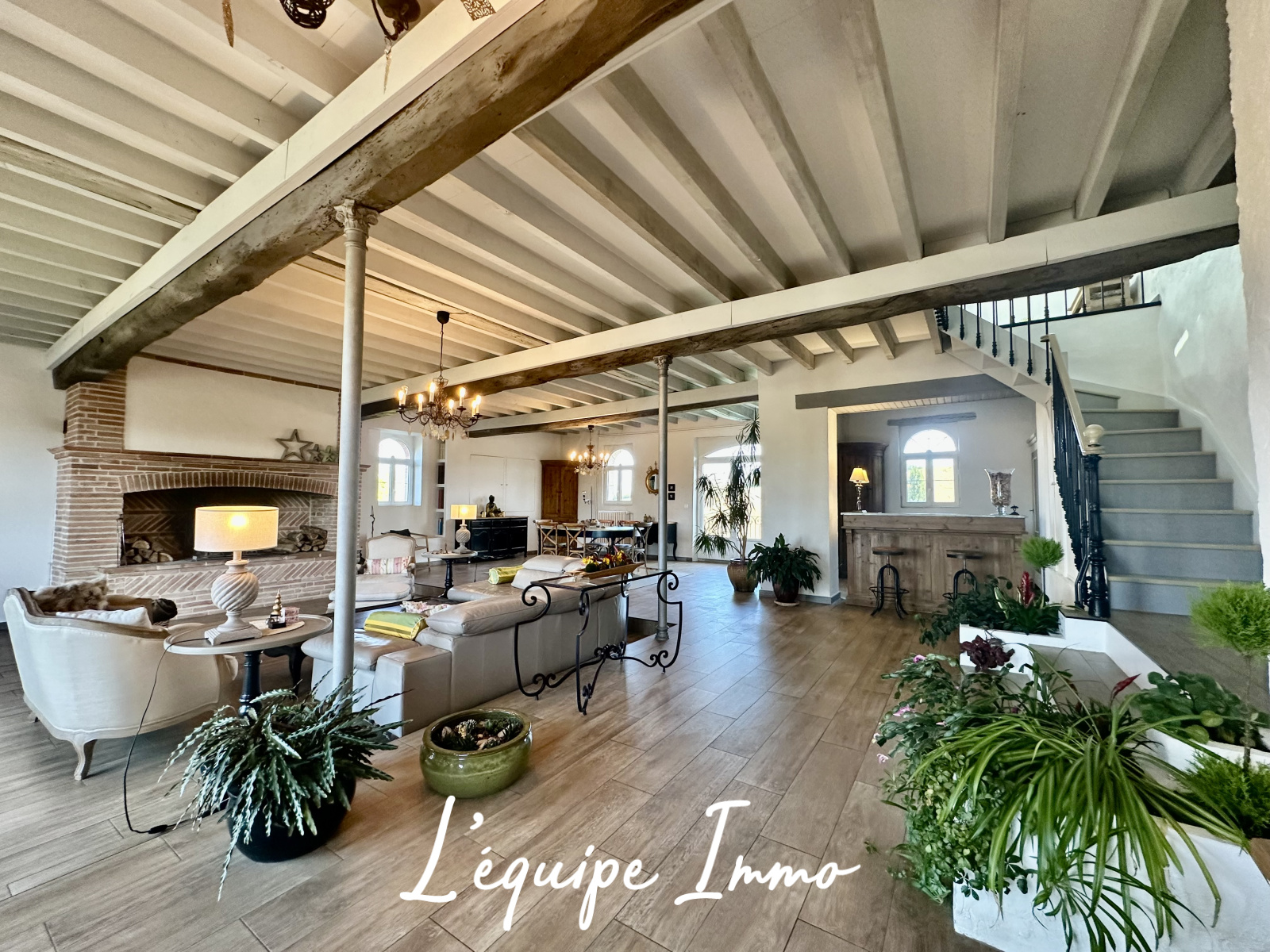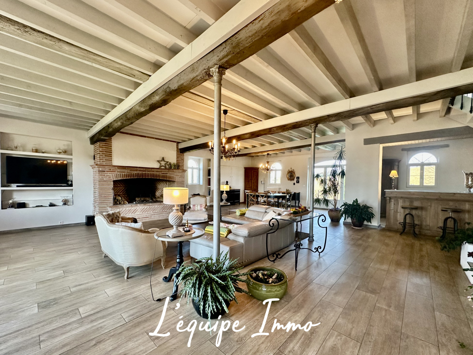 - Un espace de réception traversant de plus de 100m2, lumineux et chaleureux invite à la convivialité dans une atmosphère chaleureuse et raffinée