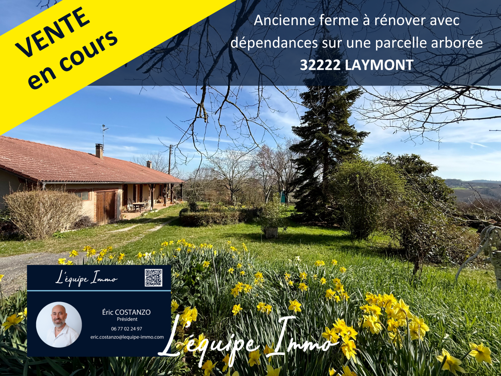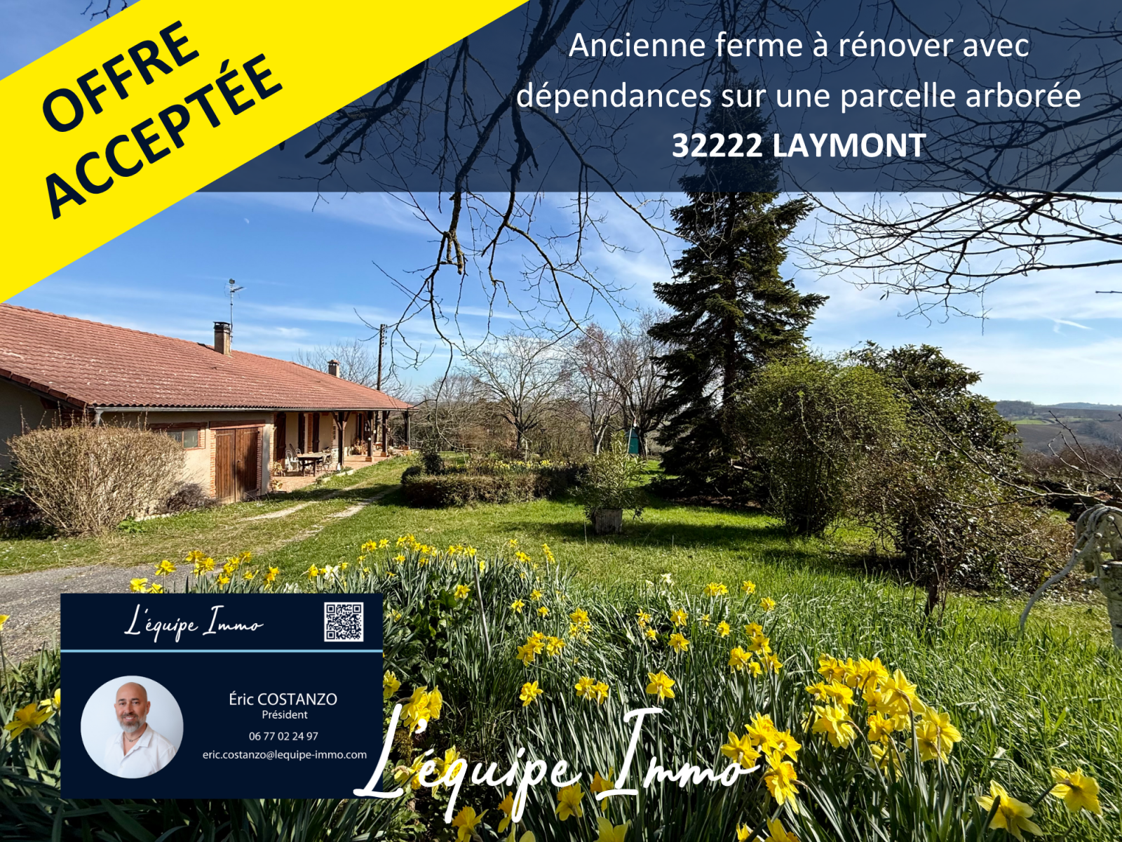 Dans un petit hameau de campagne, à mi-chemin entre Lombez et Rieumes, venez découvrir cette ancienne ferme à rénover de 112m2 avec dépendances sur une parcelle de plus de 4200m2 arboré avec une vue imprenable sur la campagne et les Pyrénées.