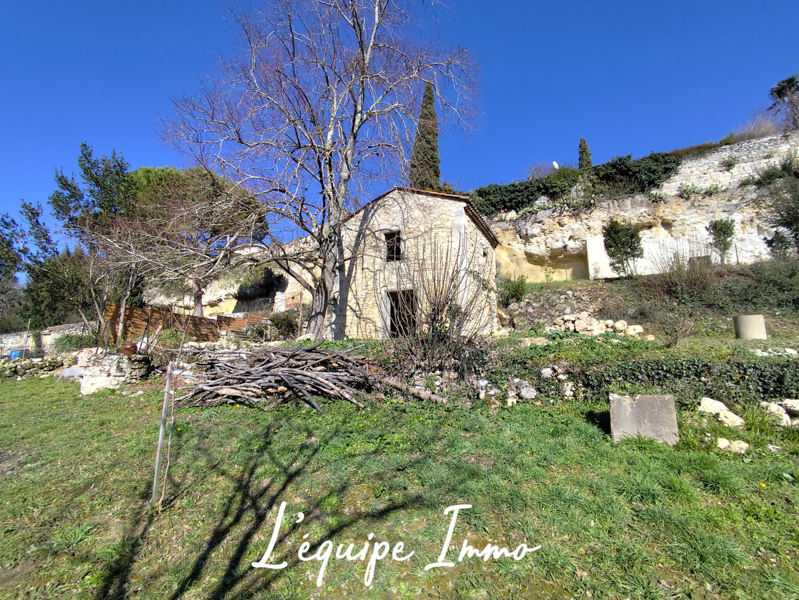 Je vous propose cette petite maison tout en pierre de 40 m² à penser et rénover se situant sur un terrain arboré de 1000 m².